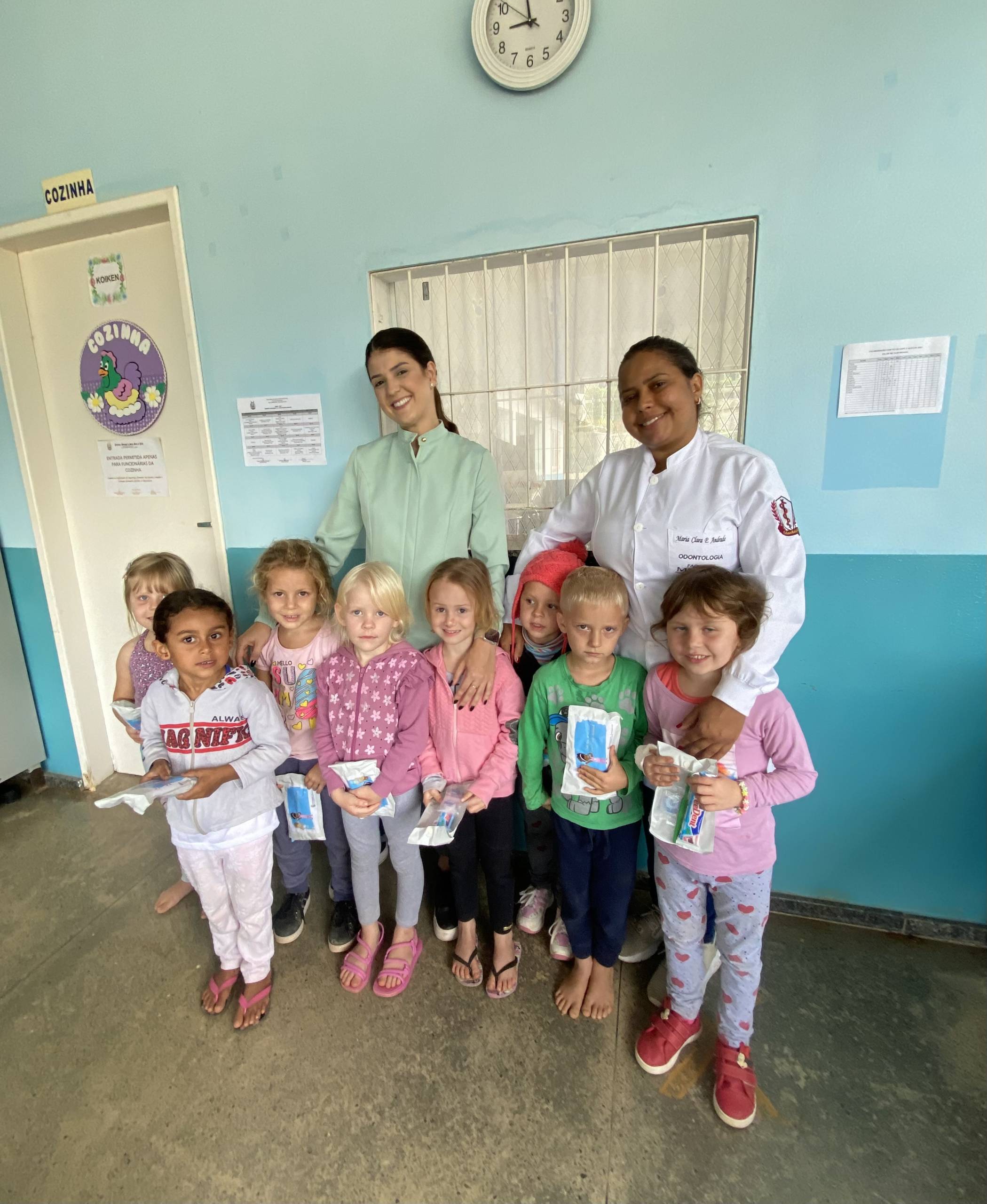 Nesta ação foi realizada uma palestra para alunos na faixa etária de 04 a 05 anos, com contação de história abordando a importância na escovação de dentes. Foi realizada escovação supervisionada pelas profissionais com os kits de higiene bucal entregue às crianças, contendo pasta, escova e fio dental.