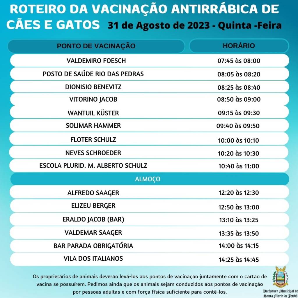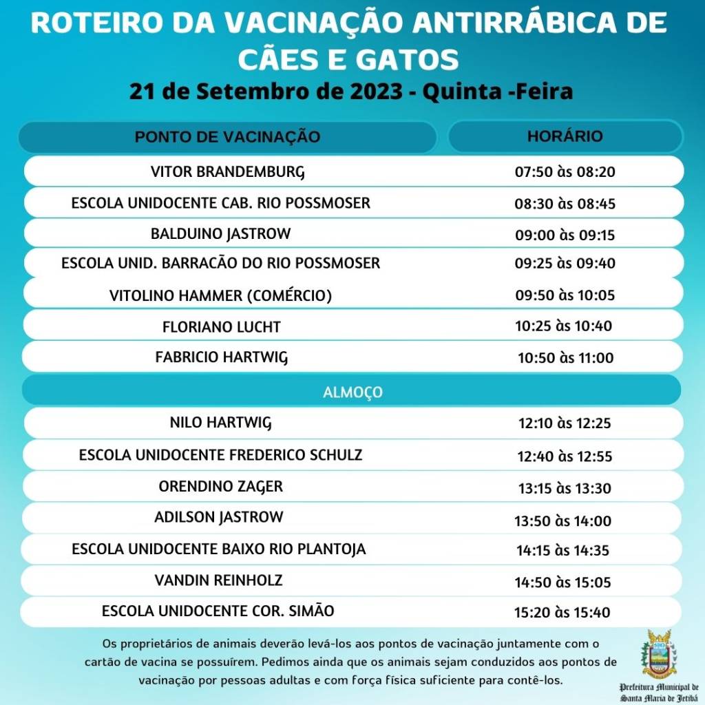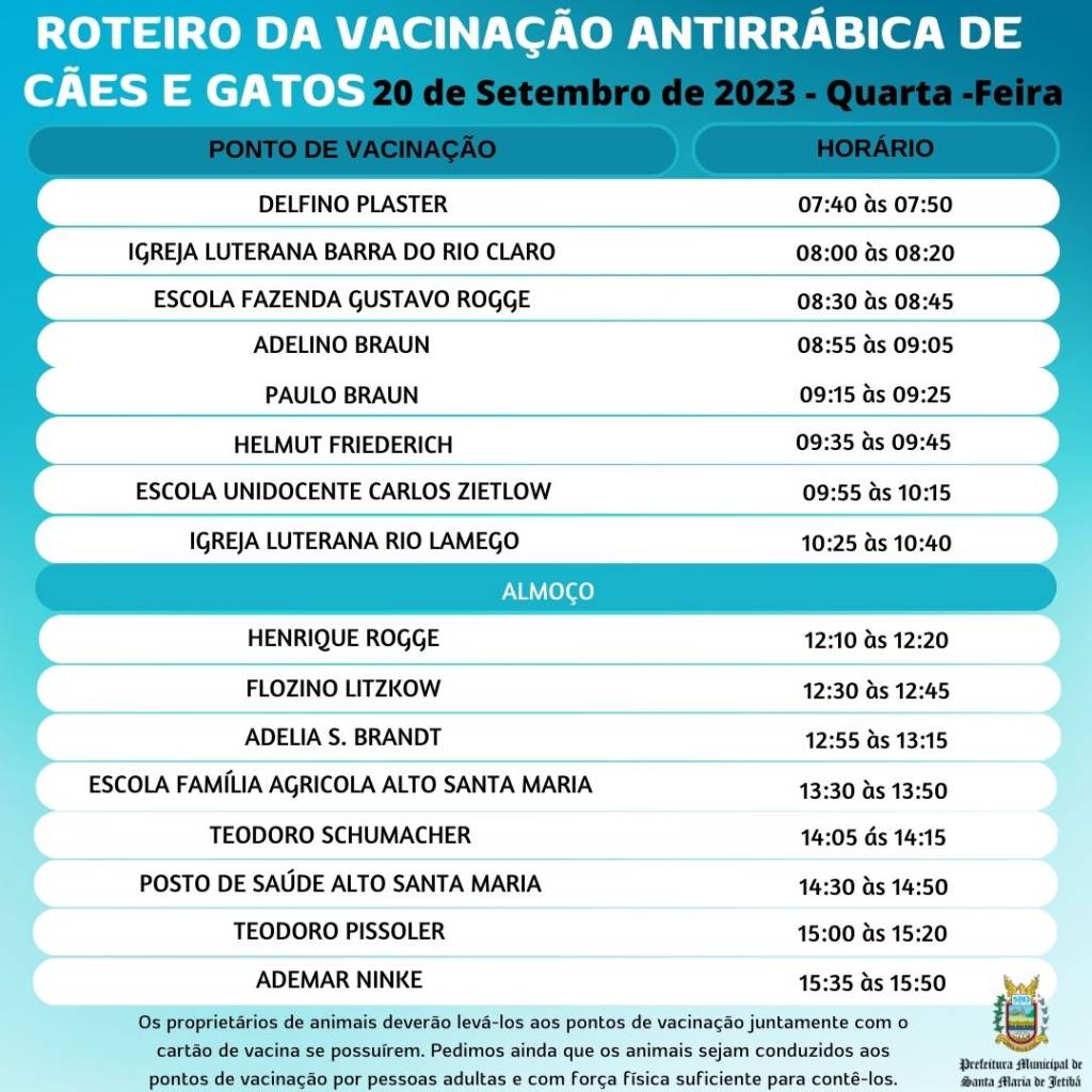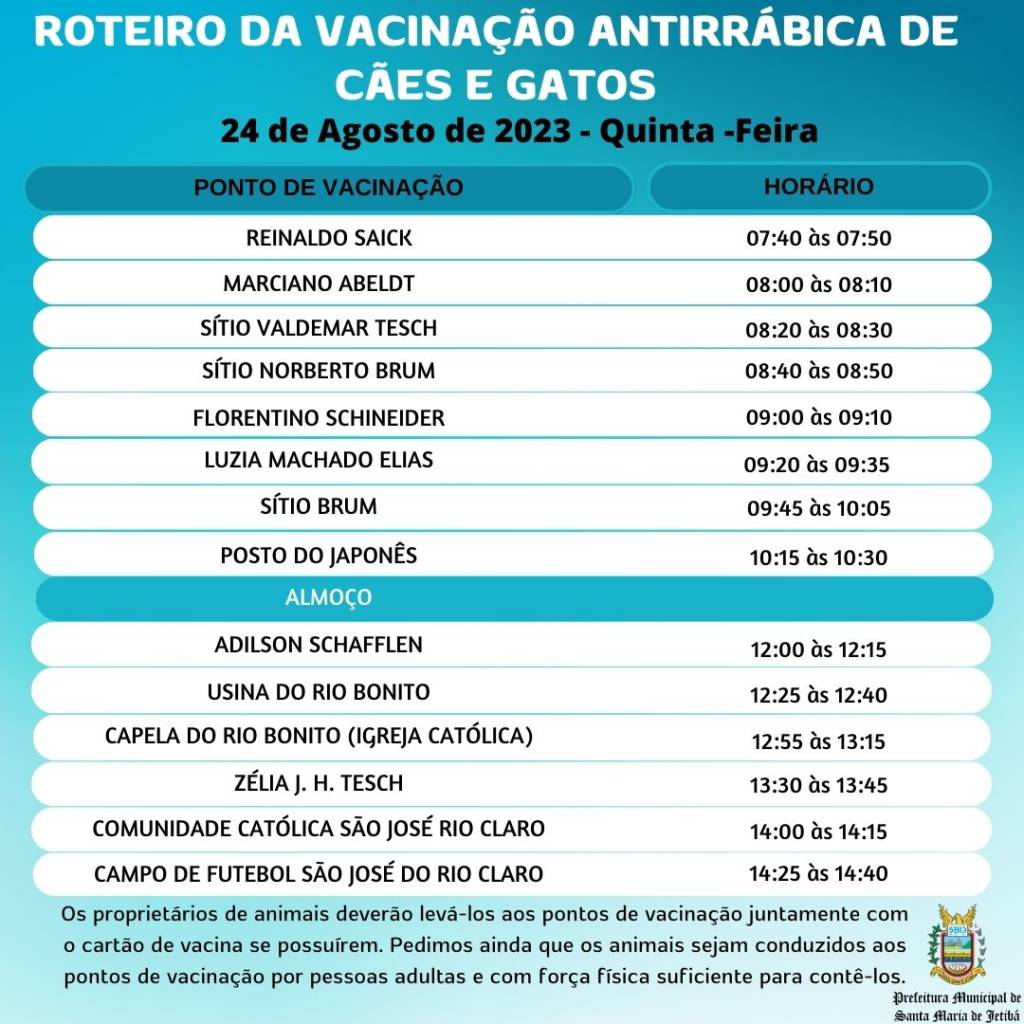 InícioNotíciasCAMPANHA DE VACINAÇÃO ANTIRRÁBICA DE CÃES E GATOS CAMPANHA DE VACINAÇÃO ANTIRRÁBICA DE CÃES E GATOS Publicado em 21/08/2023Por Secretaria Municipal de Saúde CONFIRA O ROTEIRO
