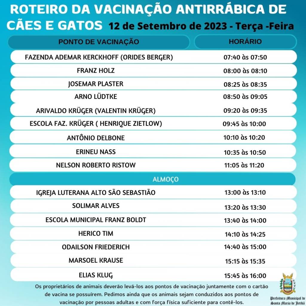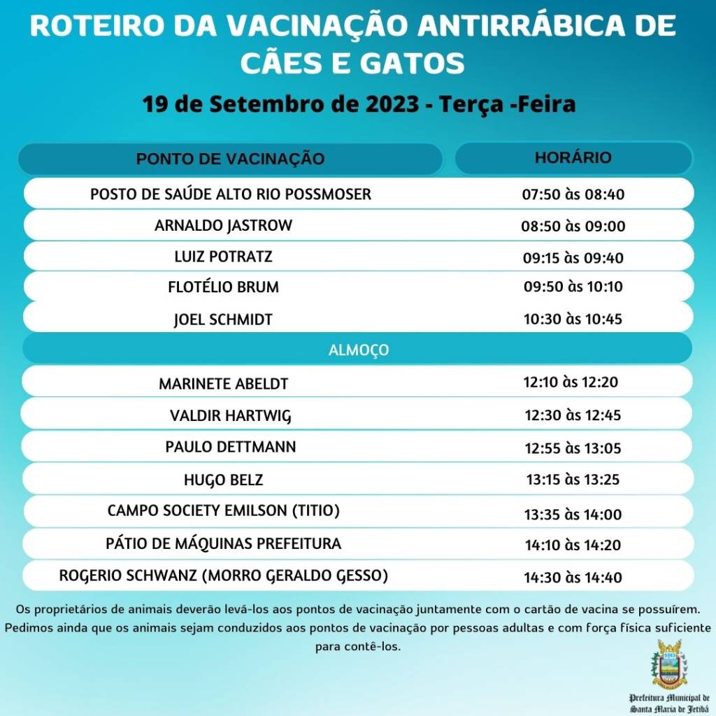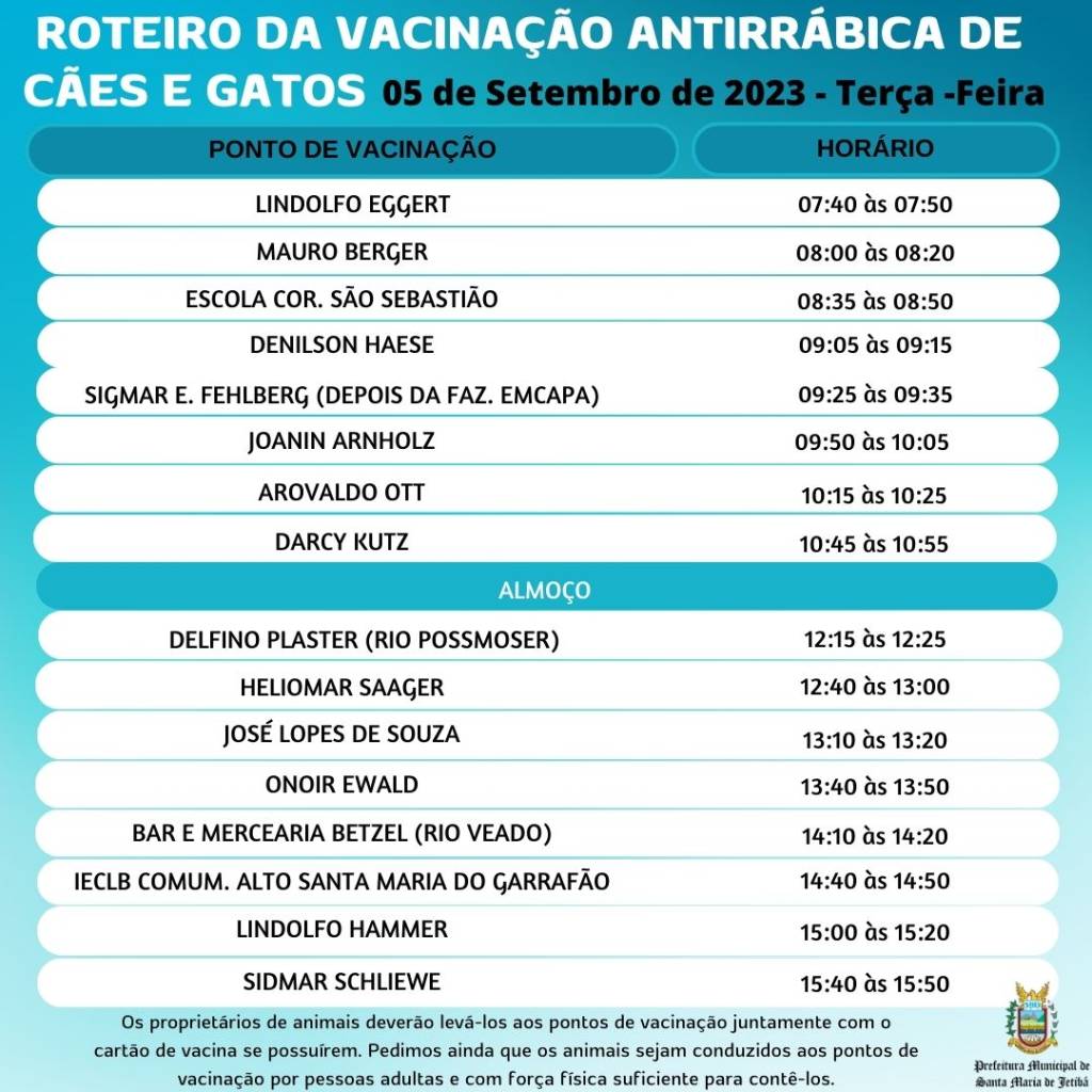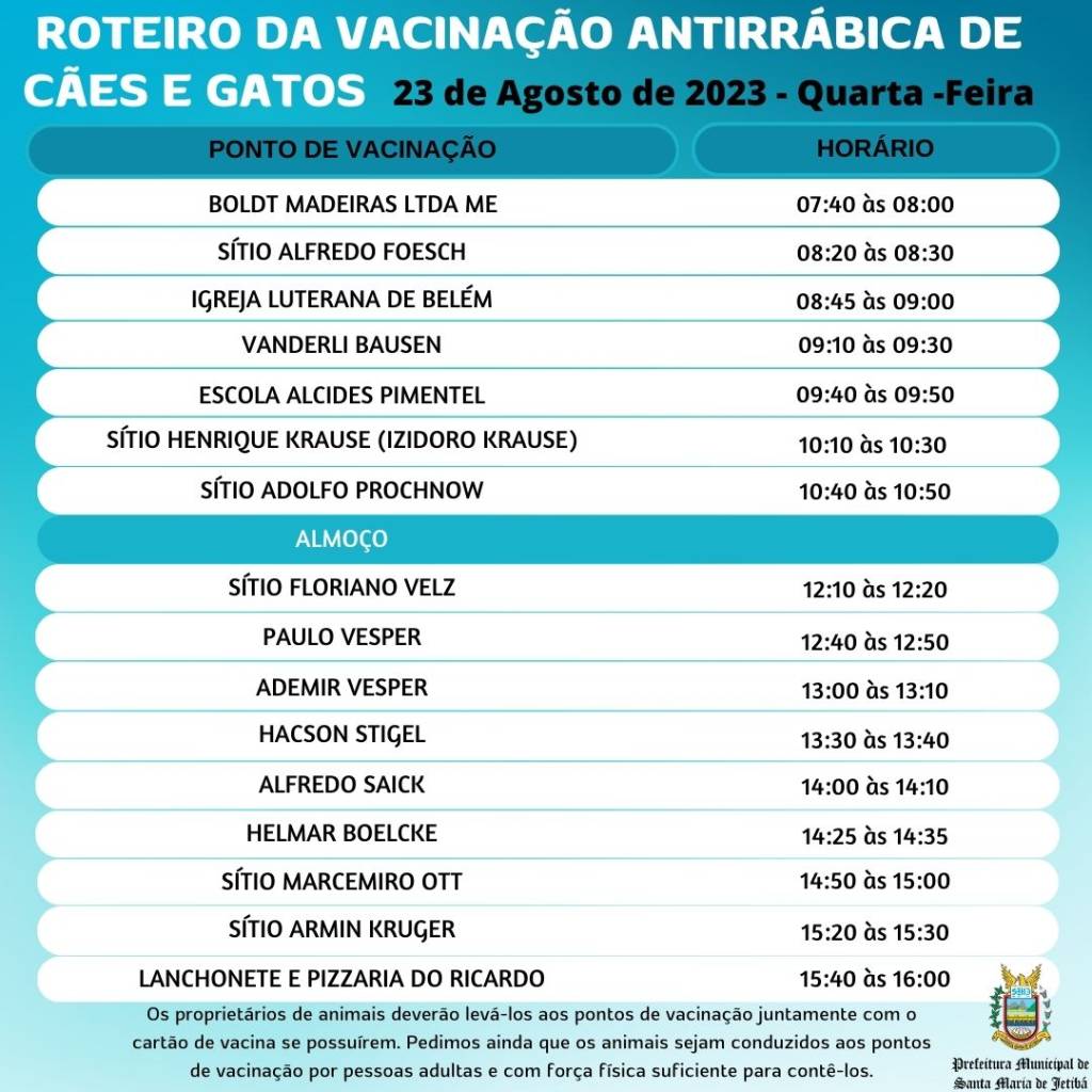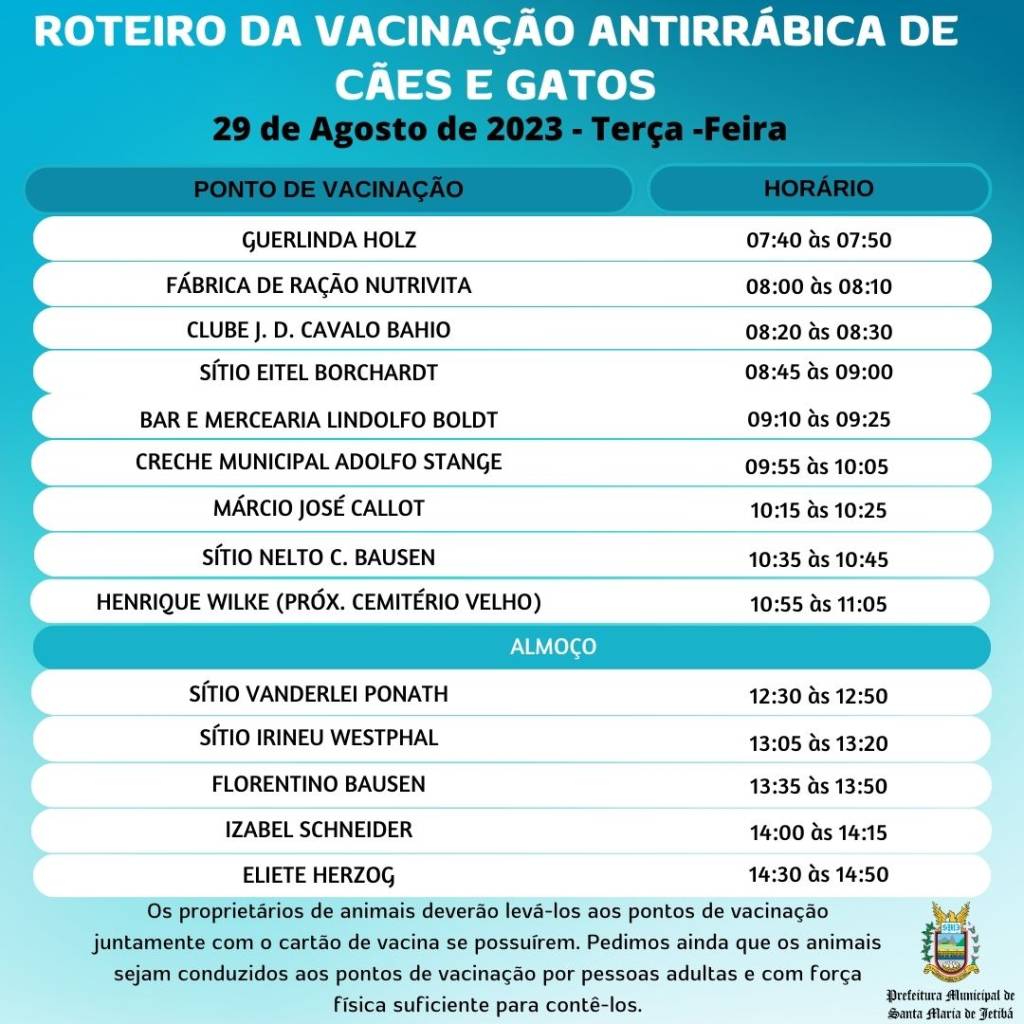 InícioNotíciasCAMPANHA DE VACINAÇÃO ANTIRRÁBICA DE CÃES E GATOS CAMPANHA DE VACINAÇÃO ANTIRRÁBICA DE CÃES E GATOS Publicado em 21/08/2023Por Secretaria Municipal de Saúde CONFIRA O ROTEIRO