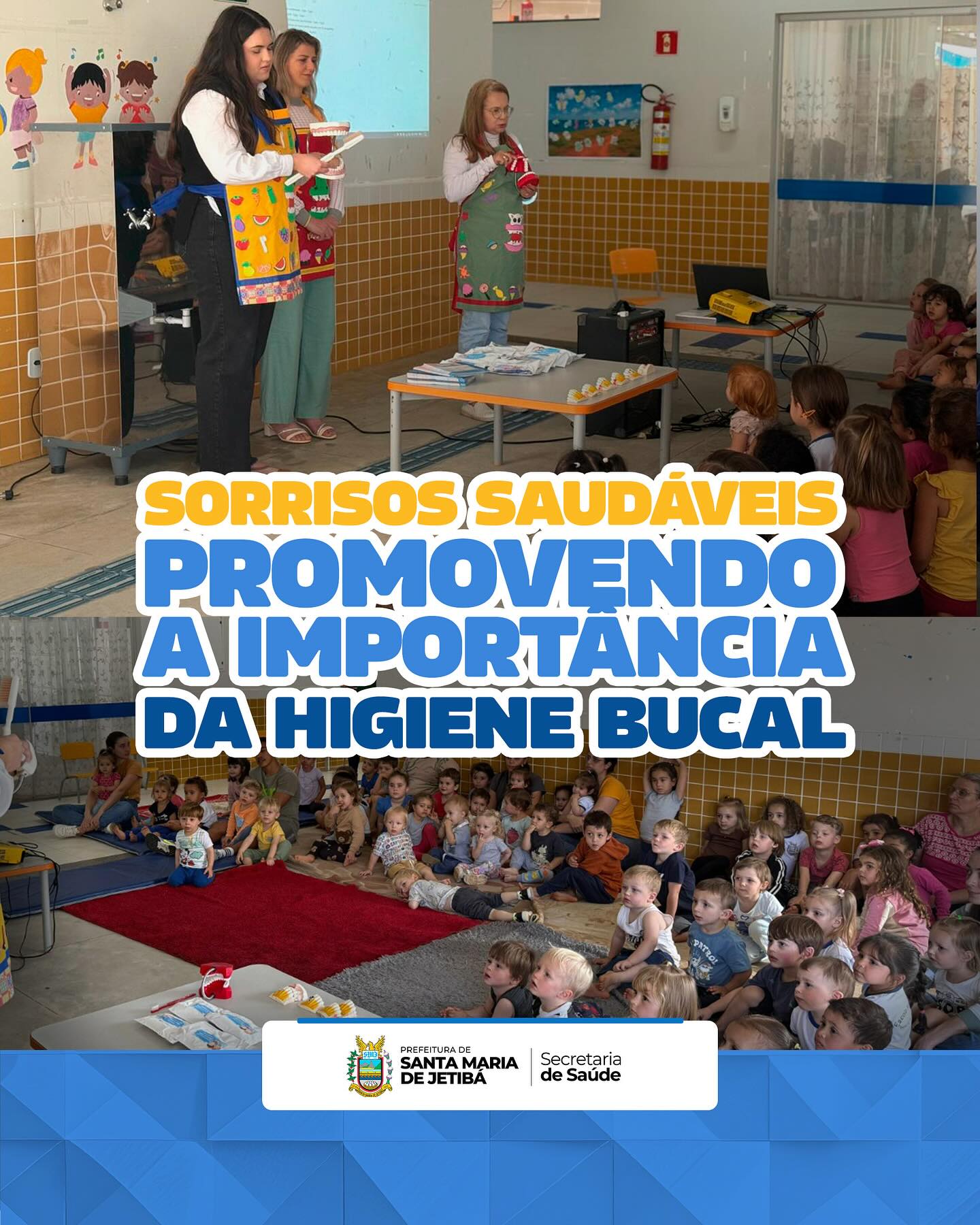 A Secretaria Municipal de Saúde, por meio da equipe de Odontologia, realizou uma palestra educativa na Creche Evelina Buss Stinquel, nos períodos da manhã e da tarde, sobre a importância da higiene bucal.