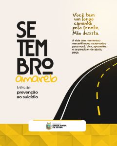 A Prefeitura de Santa Maria de Jetibá reforça a importância da prevenção ao suicídio e do cuidado com a saúde mental. Neste mês, reforçamos a mensagem de atenção, acolhimento e empatia. Se você ou alguém que você conhece precisa de ajuda, não hesite em buscar apoio. Falar é o primeiro passo para salvar vidas. Disque… Continue lendo Setembro Amarelo – Valorize a Vida!